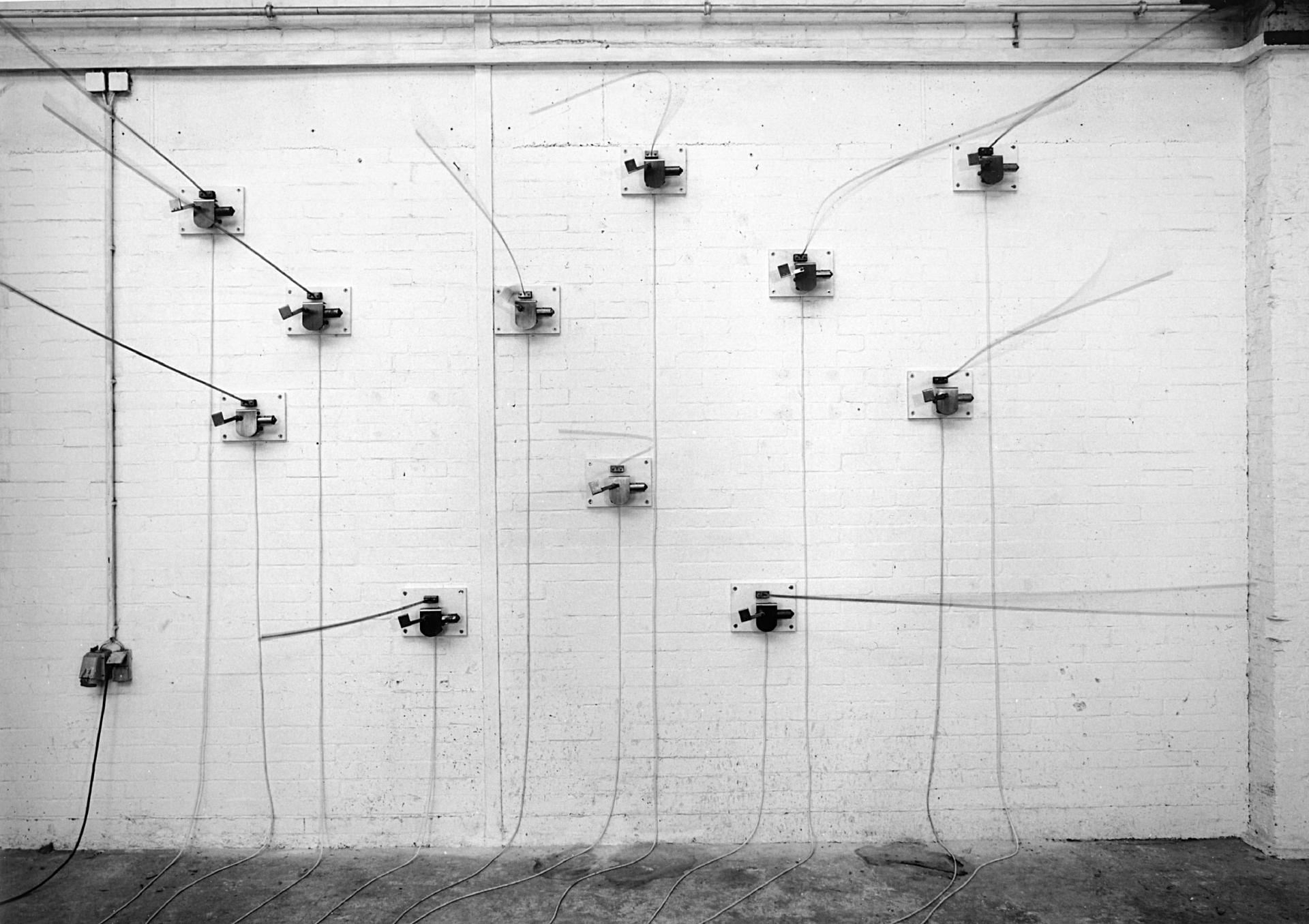 Über 2 Meter lange Federbandstähle werden von kleinen motorbetriebenen Stahlhämmern zeitversetzt angeschlagen. Die langen Stahlbänder schwingen weit aus, zucken, peitschen und klingen gegeneinander; kommen schlängelnd und zitternd wieder in eine fragile Ruheposition, bis sie erneut angeschlagen werden. Es entsteht ein aggressiv pulsierendes Gefüge mit seltsam kreatürlich anmutenden Bewegungen.